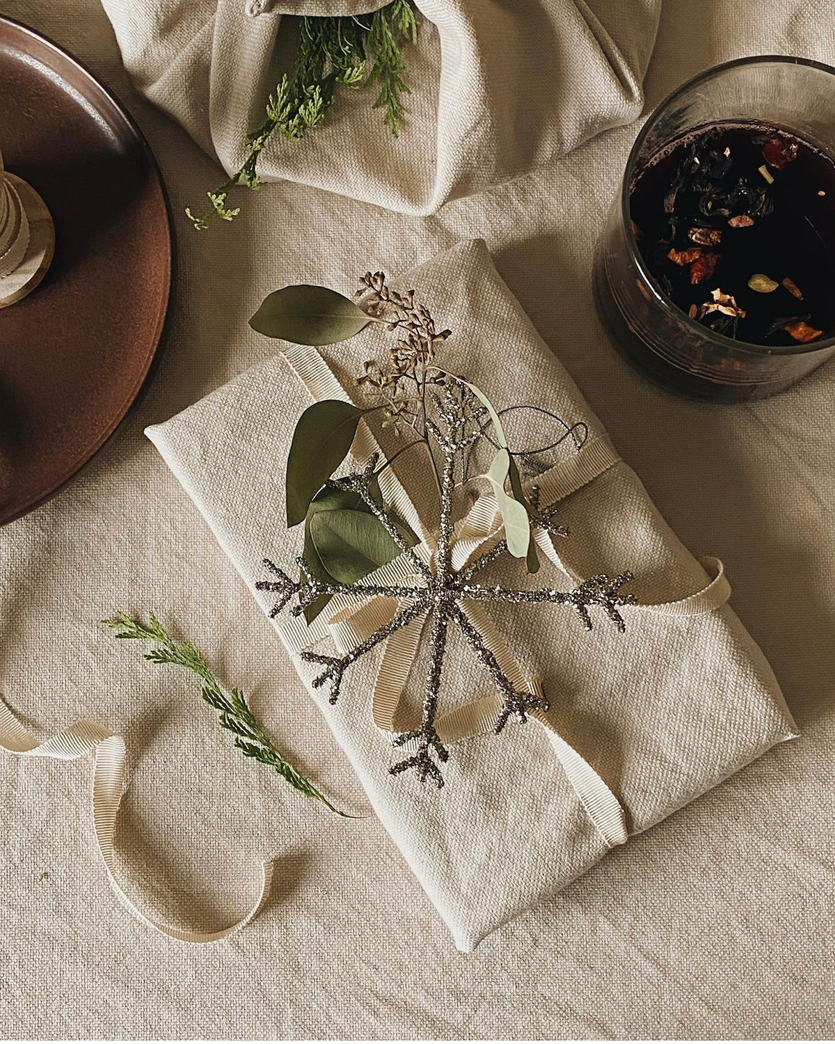 Og så har jeg i år valgt at pakke julegaverne ind i de smukke stofservietter fra Tine K. Det ser utrolig smukt ud, er samtidigt en bæredygtig gave - og så bliver det en ekstra gave i gaven."