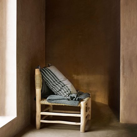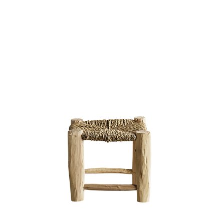 Tine K Home doum serie er en række håndlavede møbler af eukalyptus træ og palmeplade. Serien består af forskellige modeller alt fra bænke, forskellige stole og skamler til knagerakker, stiger og stumtjenere. Møblernes skillet håndlaves af eukalyptustræ mens sæderne flettes af palmeblade. Kombinationen af de to materialer skaber et naturligt og råt look. Både eukalyptustræ og palmeplade er hårdfør og slidstærke, hvilket skaber et modstandsdygtigt møbel. Designet er simpelt og enkelt i udtrykket, og bidrager med et strejf af natur til indretningen. Placer en bænk i din entré som et smukt velkomst møbel, og en praktisk siddeplads til når man skal tage sine sko på. Monter vores doum knagerække på soveværelset til morgenkåben eller i entréen til dit overtøj. Knagerækken fås i forskellige størrelser, som betyder at du kan vælge efter dit behov. Knagerækker er både dekorative og smarte til opbevaring, og gør det nemt at komme af med overtøjet når du kommer hjem eller til at hænge tasken på. Vores skamler og taburetter er gode at bruge som ekstra siddepladser rundt om i hjemmet, som små stands til vaser, lysestager eller ligene og som hyggelige elementer i indretningen. Vores doum stige er smuk at bruge på badeværelset til håndklæder eller til at hænge smukke planter på. Stigen kan også bruges i køkkenet til ophæng af krydderurter og viskestykker. Eukalyptus stolen har et dybt sæde og en lav siddehøjde som gør stolen behagelig og afslappende at sidde på. Stolen er praktisk i entreen, men kan også sagtens bruges som en dekorativ hvileplads i stuen eller køkkenet. Når stolen ikke er i brug, kan den bruges til opbevaring af magasiner eller pyntes med en plante. Sæde og ryglæn er flettet i kraftige palmeblade som gør stolen robust og stærk.