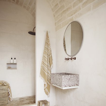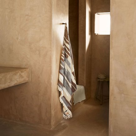 Løft ethvert badeværelse med de bløde, fladvævet hammam håndklæder fra Tine K Home. Vores hammam håndklæder har et bølget stribet mønster i bløde farver og med frynser på de korte sider. Håndklædet er kompakt og praktisk, og kan derfor bruges til en masse ting; Brug blandt andet håndklædet som et picnic tæppe på en afslappende søndag, et badehåndklæde eller viklet omkring dig som en sarong ved poolen. Mulighederne er mange og håndklædets farve og mønster er både dekorativt og inspirerende.