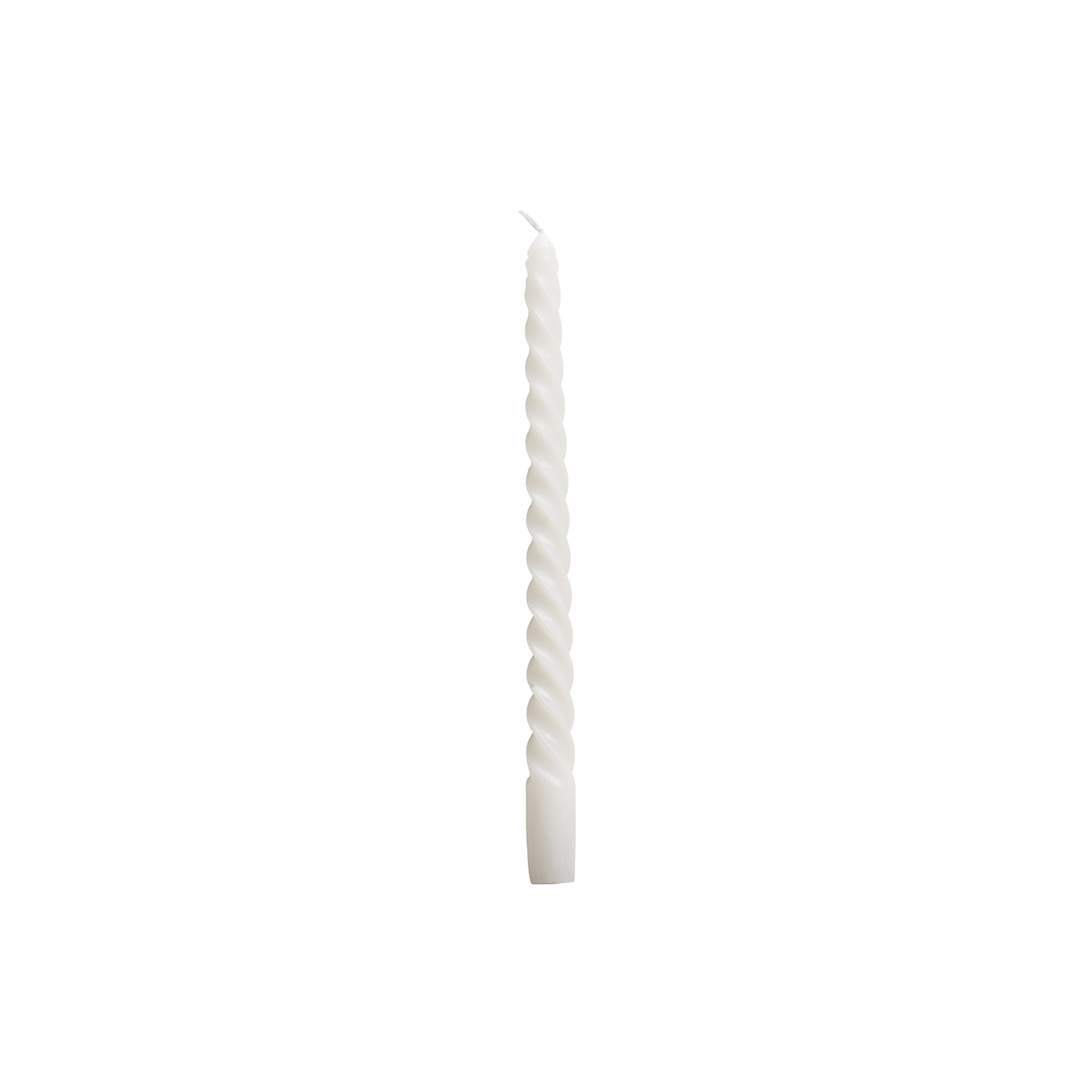 12 smukke hvide lys i 100 % paraffin med flot snoet detalje.