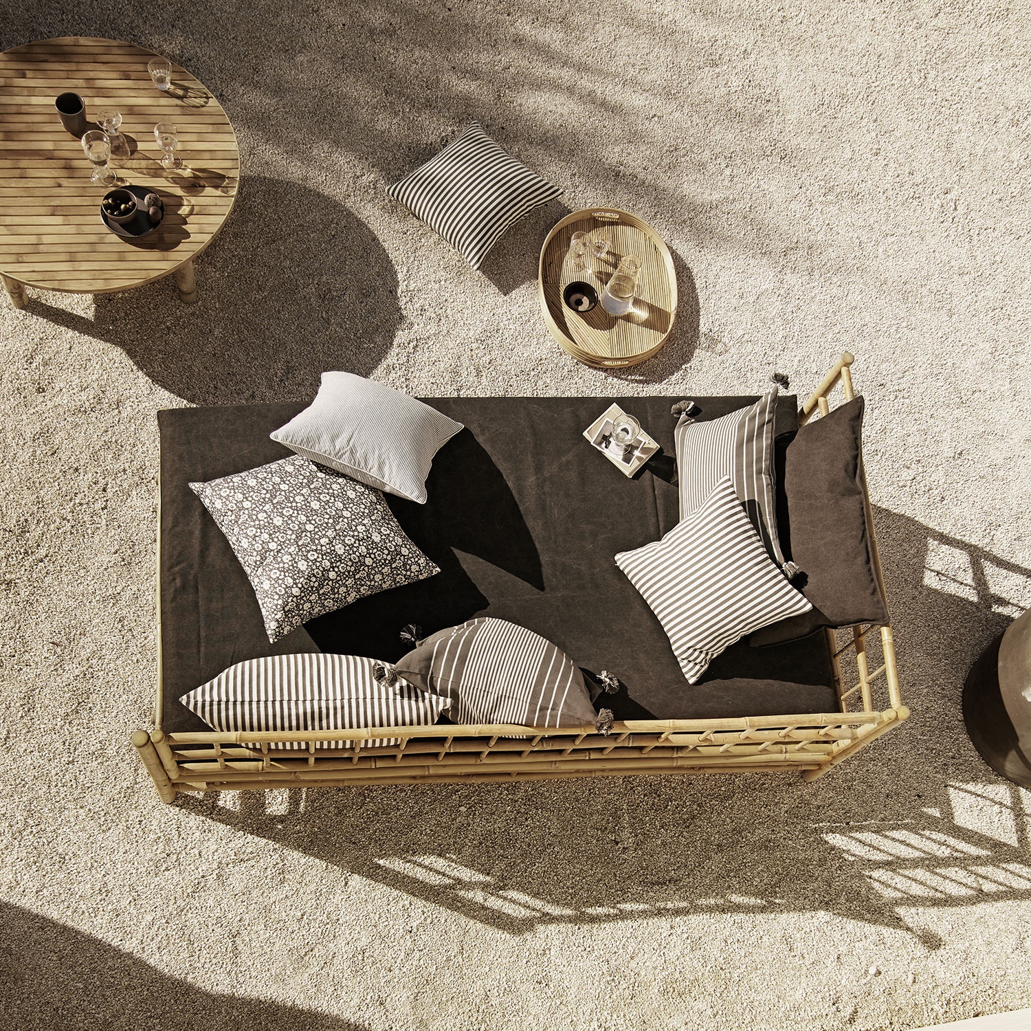 Vores bambusmøbler er behandlet med en vandbaseret naturlig træolie, som gør møblerne mere modstandsdygtige overfor vind og vejr. Læs mere om behandling og vedligeholdelse af bambusmøbler her: https://www.tinekhome.com/da/pleje-af-bambus/