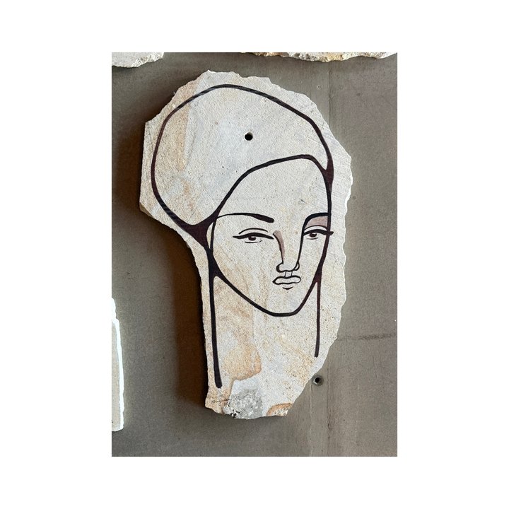Sandstenen er et naturligt og rustikt materiale, dannet gennem århundreders tryk, og inspireret af det japanske Wabi-Sabi, som hylder skønheden i det uperfekte og naturlige. Ved at male på dette unikke materiale kombinerer Sara sin kunstneriske mystik med sandstenens naturlige teksturer og farvespil.