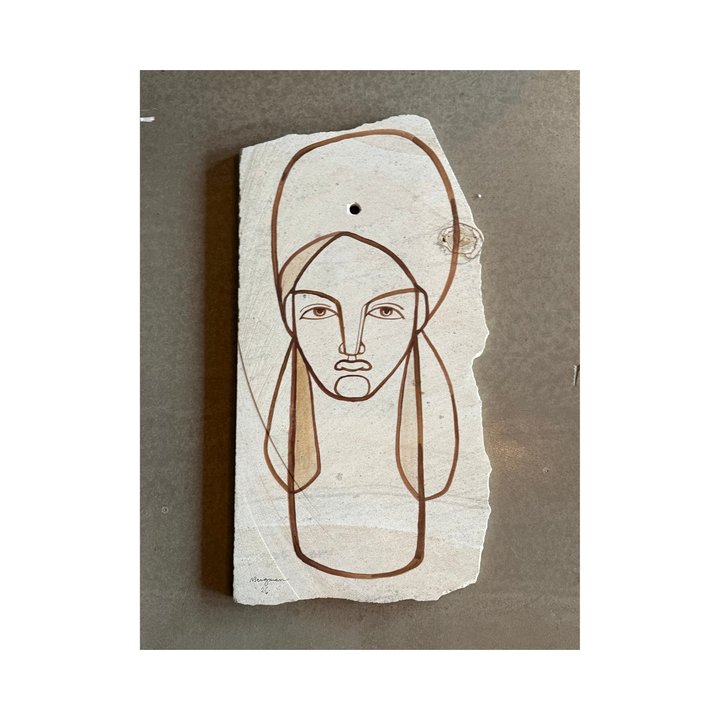 Sandstenen er et naturligt og rustikt materiale, dannet gennem århundreders tryk, og inspireret af det japanske Wabi-Sabi, som hylder skønheden i det uperfekte og naturlige. Ved at male på dette unikke materiale kombinerer Sara sin kunstneriske mystik med sandstenens naturlige teksturer og farvespil.