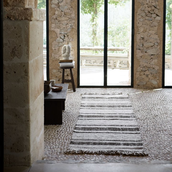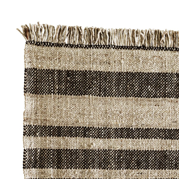 Vores kærlighed til naturlige materialer og farver kommer til udtryk i disse håndlavede gulvtæpper, som er vævet af 100% OEKO-TEX-certificeret New Zealandsk uld. Garnene kartes i hånden for at bevare uldens tekstur, og hvert tæppe er håndvævet i Indien af dygtige håndværkere.