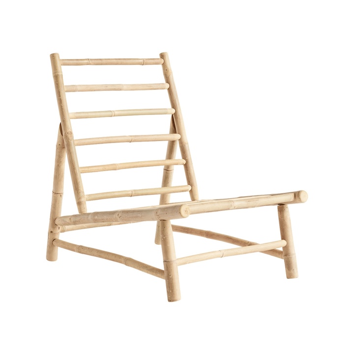 Denne enkle lounge stol i skandinavisk design med smukke lige linjer, er let at integrere i indretningen, og du kan bruge lounge stolen indendørs såvel som udendørs. Alle vores bambus møbler er håndlavede og tapsamlet for at skabe det mest naturlige udtryk på møblerne. I et bambusmøbel får du et smukt naturligt design som er let at flytte rundt på og som holder i mange år. Med dette møbel medfølger der en blød og behagelige sidde hynde samt pude til ryggen i 100% bomuld, hynderne fåes i hvid, grå og phantom.