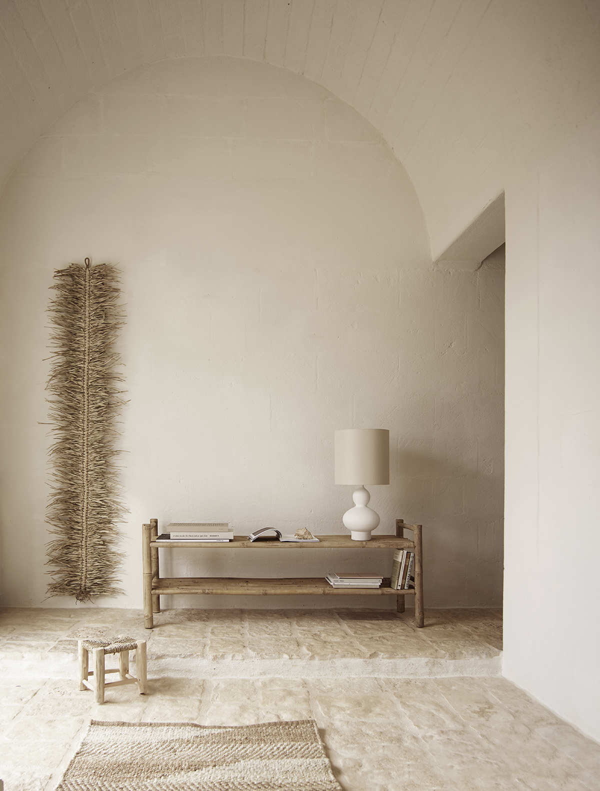 Vores kollektion af hylder i bambus, kombinerer traditionelt håndværk og moderne design. Denne bambushylde er håndlavet af hele bambusstængler. Brug den til ekstra opbevaring, som et display til dit smukke interiør og bøger eller som et særskilt hyldesystem til håndklæder på dit badeværelse.