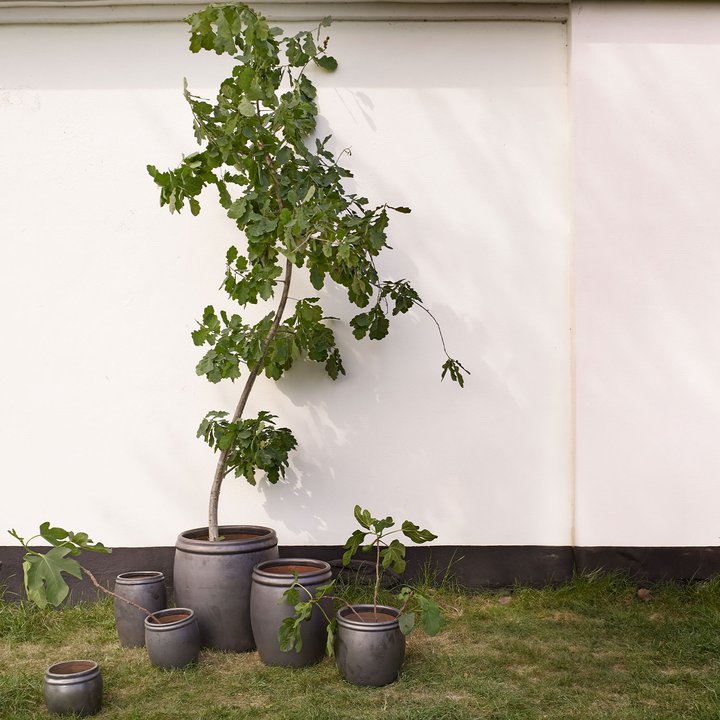 - Vi anbefaler brug af underskåle. Til disse krukker bruger vi størrelse 30 & 40 cm