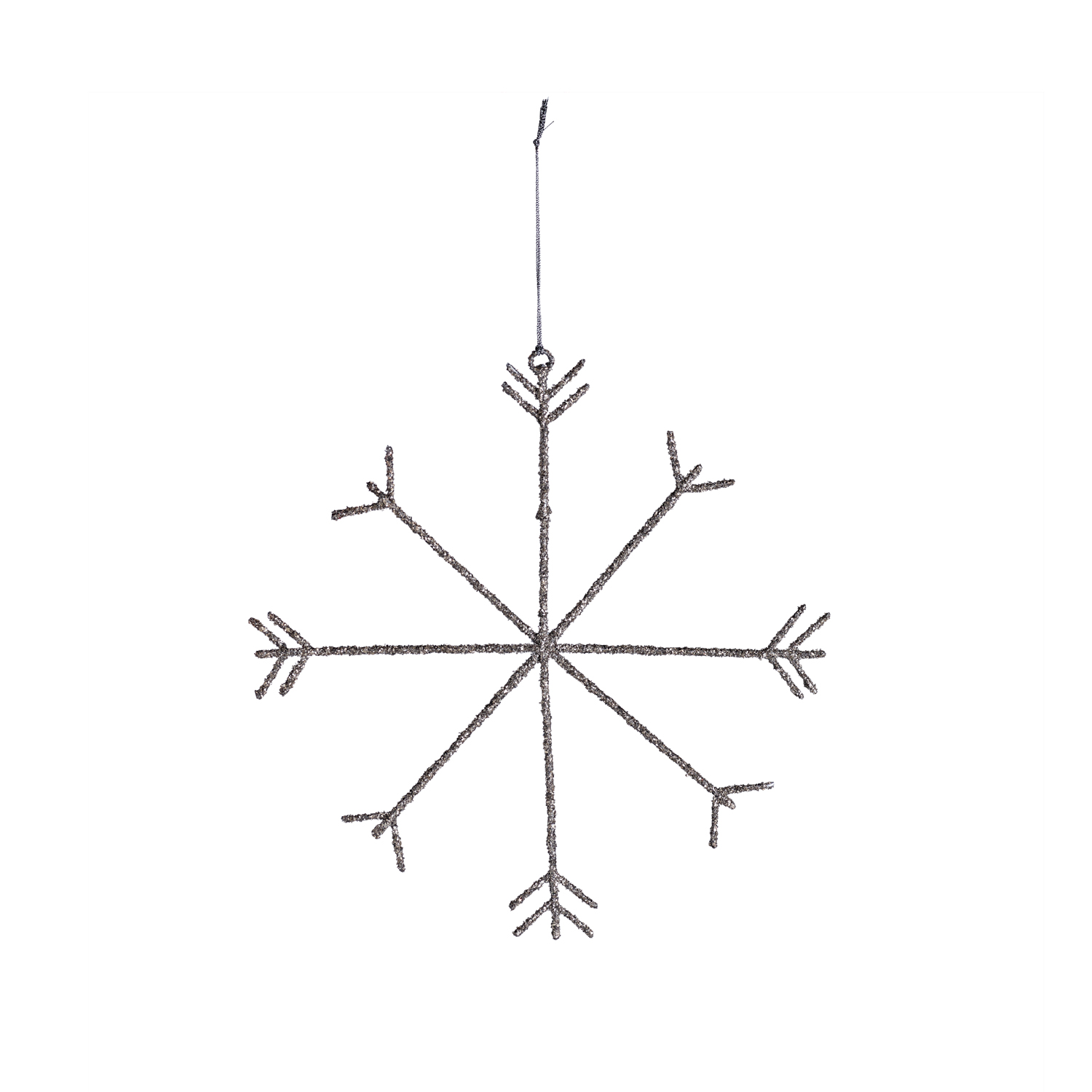 Julen nærmer sig. Indret dit hjem med vores snefnug i metal. Dækket i genanvendt glas glitter, der reflektere fortryllende i lyset.