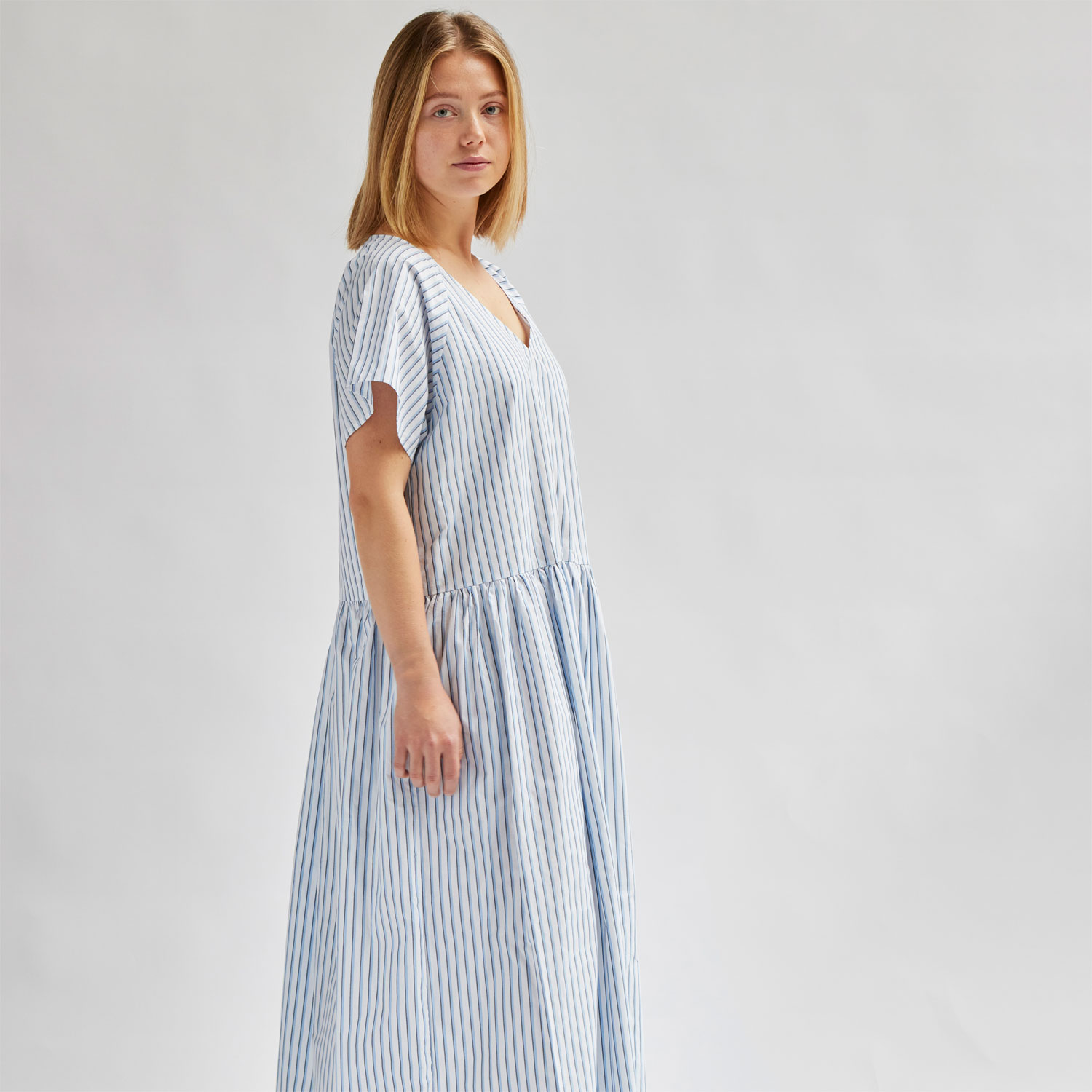 En skøn kjole med et Tine K Home twist. Kjolen har en afslappet pasform med en rynket poplin-nederdel, korte ærmer og er lavet af 100 % bomuld.