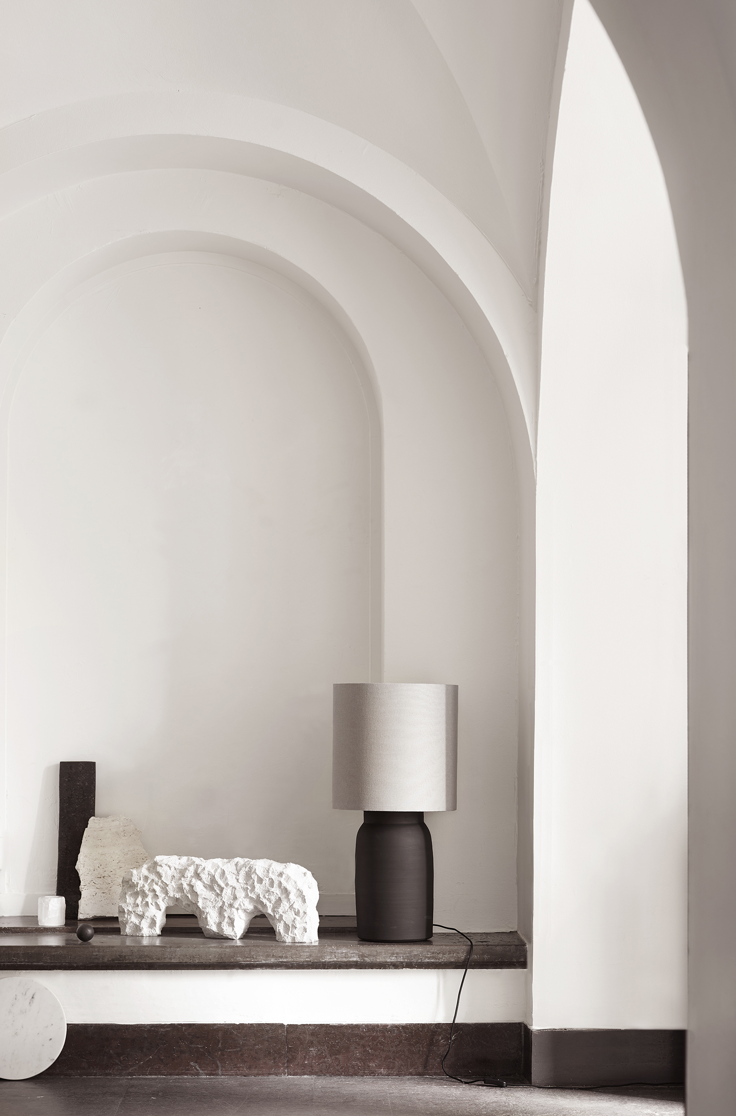 Smuk lampeskærm af hør i en klassisk grå farve. Foret i satin matcher hør farven.