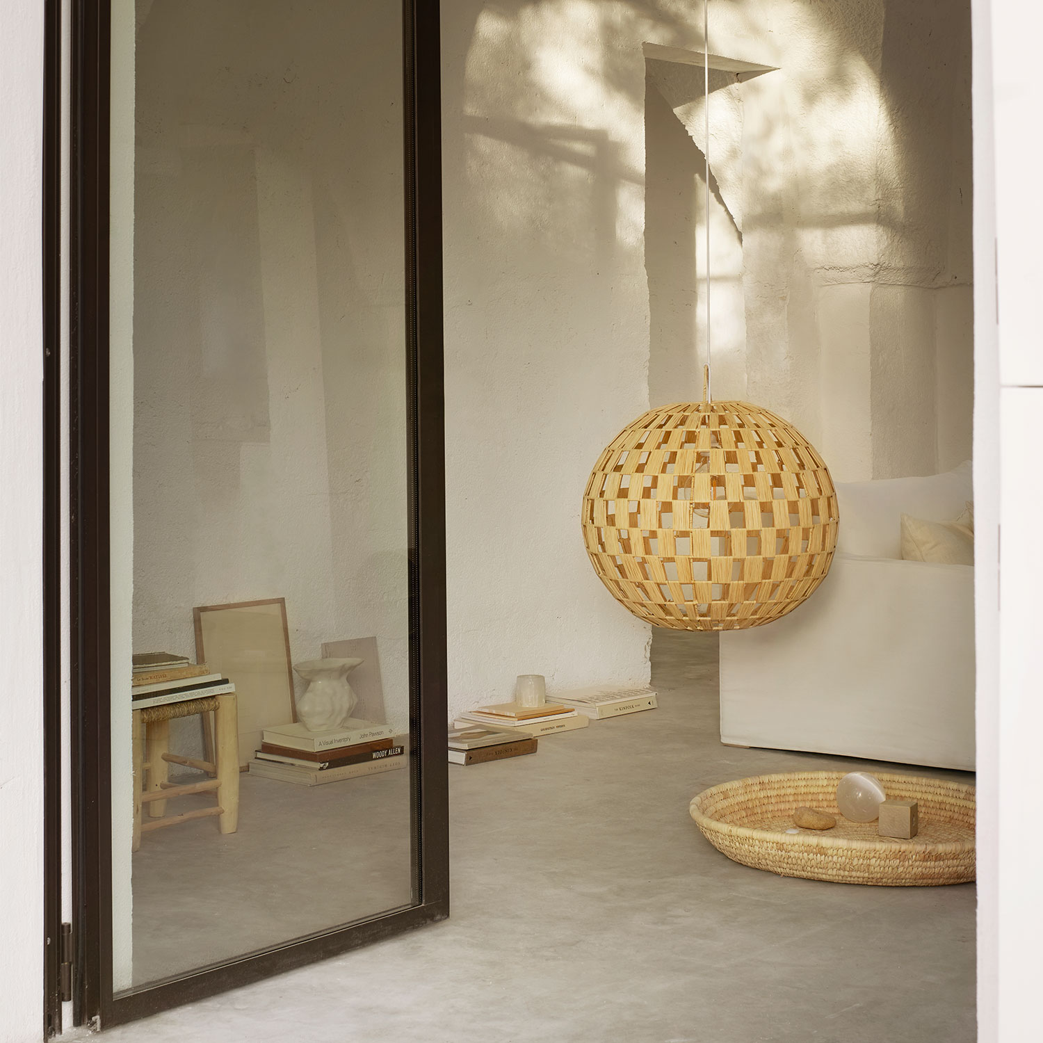 Smuk håndlavet statement lampe lavet af raffia. Brug denne lampe over spisebordet, for at skabe et smukt dekoreret look. Lampen kan også bruges som dekoration i entreen, og bringe et perfekt lys ind i rummet. Denne statement-lampe er 60 cm i diameter og vil lyse op i ethvert rum og er bare smuk i sig selv.