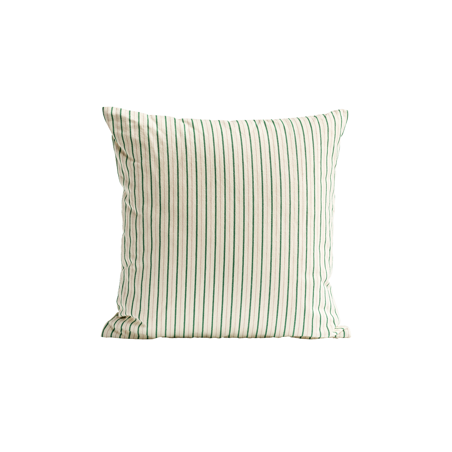 STAYSTRIPE er en serie af smukke produkter I bomuld. Designet findes som pudebetræk, totebag, pung, betræk til siddepude og som taske (shopper). Kendetegnende for serien er de fine striber der løber langs pudebetrækket. Hver af de tre varianter har to forskellige farvede striber. GREEN har en fremtrædende flot grøn, som er kombineret med farve fra denne kollektion, blush. Betrækket fremstår enkelt og harmonisk. Kompositionens proportioner, stribernes farve og baggrund, skaber et beroligende udtryk der gør det muligt at matche med mange stilarter.