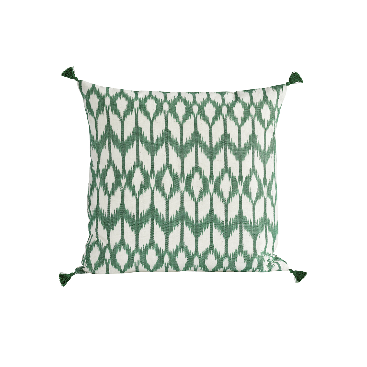 Skønt pudebetræk I et smukt grafisk print. Pudebetrækkets særlige mønster skaber et smukt blikfang i sofaen eller lænestolen. Kombinationen af vores nye stærke grønne farve sammen med en elegant knækket hvid farve, skaber en smuk kontrast til hinanden og komplimenterer hinanden smukt i det moderne hjem. Pudebetrækket er håndvævet samt indfarvet i hånden, hvilket gør hver enkel pudebetræk unik. Ydermere er pudebetrækket blødt og er god at mikse med pudebetræk i samme farvenuancer.