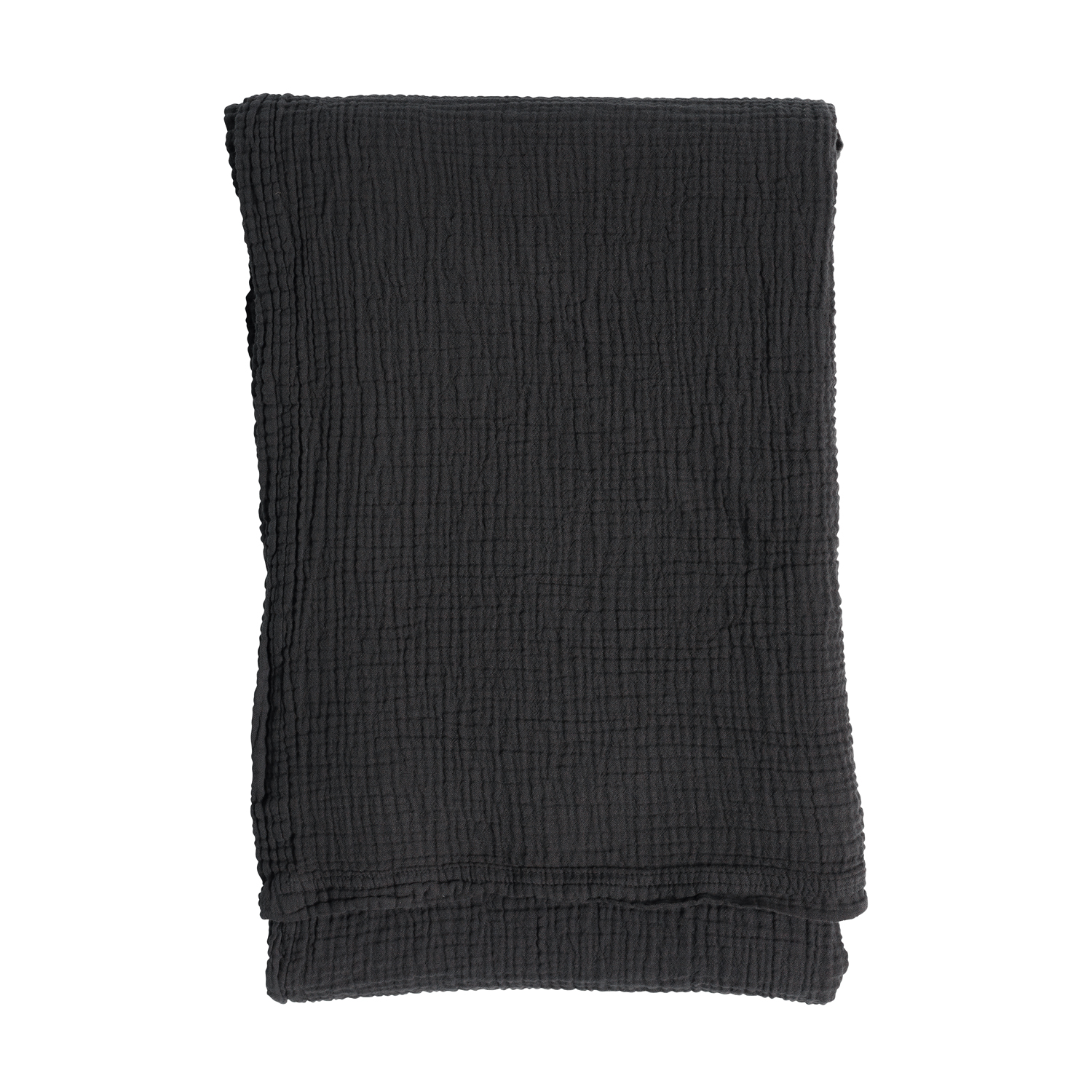 Et skønt blødt tæppe i musselin bomuld, et 2-lags bølget bomuld, som giver plaiden sit karakteristiske udseende. Musselin bomuld har et karakteristik luftigt og levende udseende og gør at tekstilet har et blødt fald.