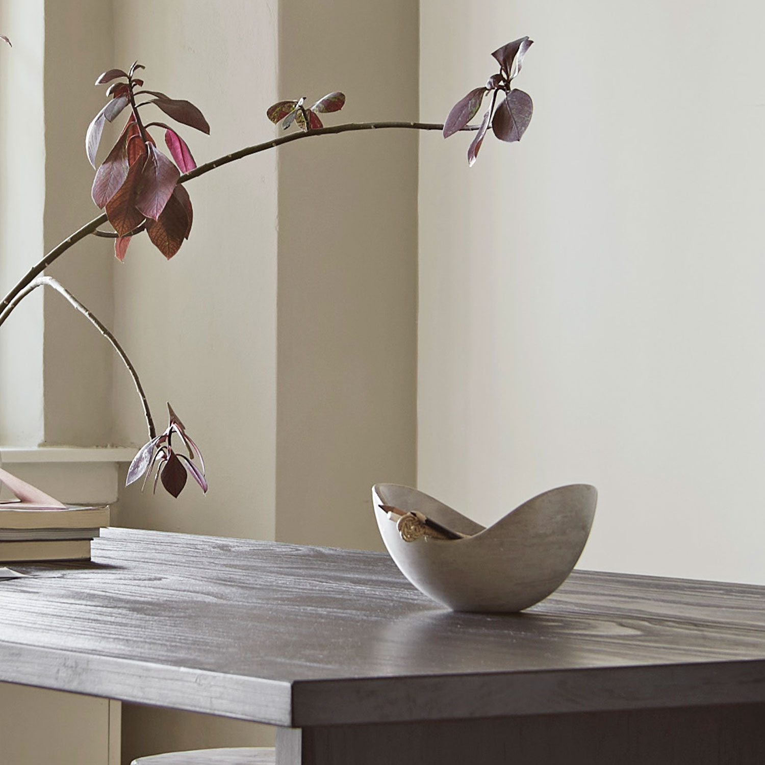 Skålens organiske form drager tankerne hen på naturen, hvor bevægelse og bløde former er i fokus. Skålen er smuk at bruge som et dekorativt element i stuen, eller til opbevaring af løg, hvidløg eller ligende. Skålen er ikke fødevaregodkendt. Olie og andre væsker kan forårsage skjolder.