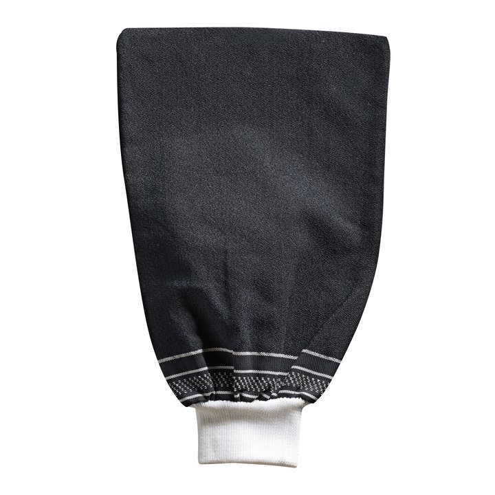 Lækker badehandske i viskose/polyamid. Vaskehandsken er sort, og har en ru overflade som giver en sanselig og behagelig 'hammam' vask af kroppen.