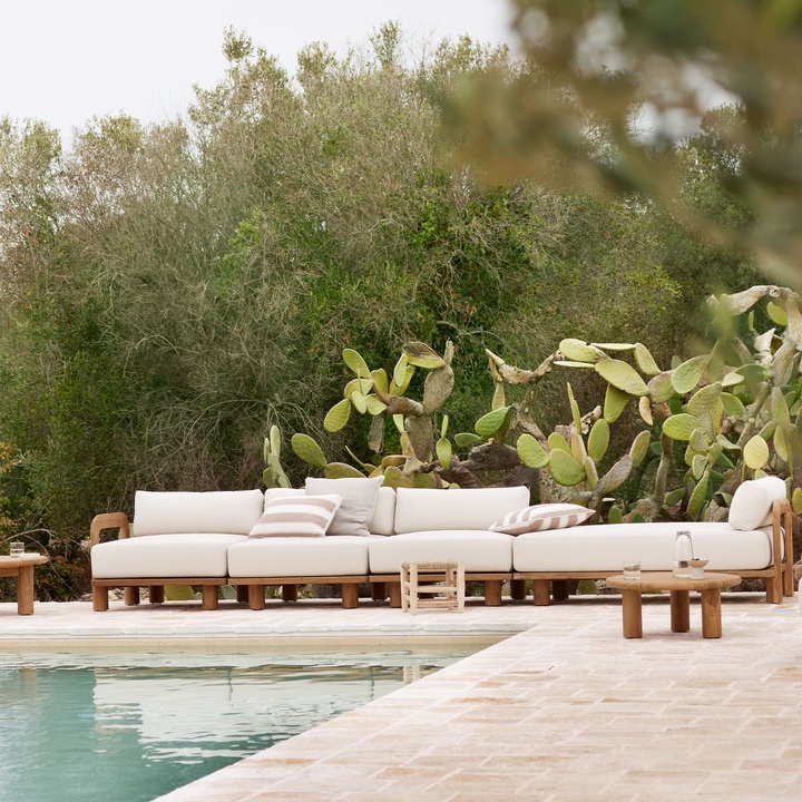 Dette er Tine K Home Teak-serien. Et eksklusivt udvalg af udendørsmøbler lavet af 100% FSC-certificeret og genanvendt teaktræ fra Indonesien. Oplev den afslappende fornemmelse af luksus ved at kombinere Teak-moduler og borde efter din foretrukne opsætning og skab et harmonisk loungområde.