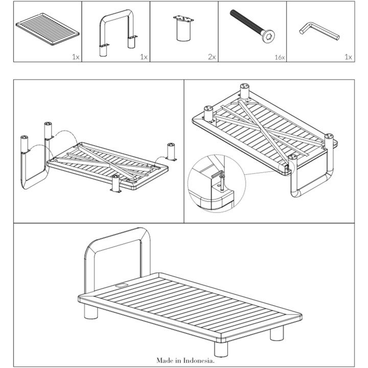 Udover det høje indhold af naturlig olie i træet, der gør serien velegnet til udendørs brug, er møblerne også naturligt slebne og behandlet med en vandbaseret topcoating for beskyttelse. Over tid vil træet få en smuk, naturlig grålig patina. Hvis du vil bevare teakens varme farve, skal du behandle møblet med udendørs træolie.