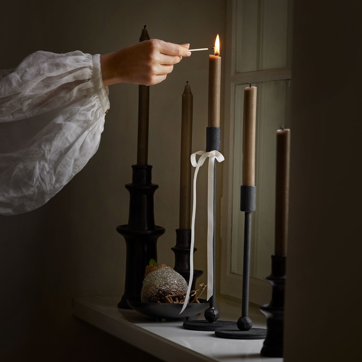 This Ballcandlestick features beautiful shapes and is made of iron. The raw, matte finish creates a striking contrast to minimalist interior styling, allowing the candleholder to serve as a statement piece – almost evoking associations with a spartan lifestyle.