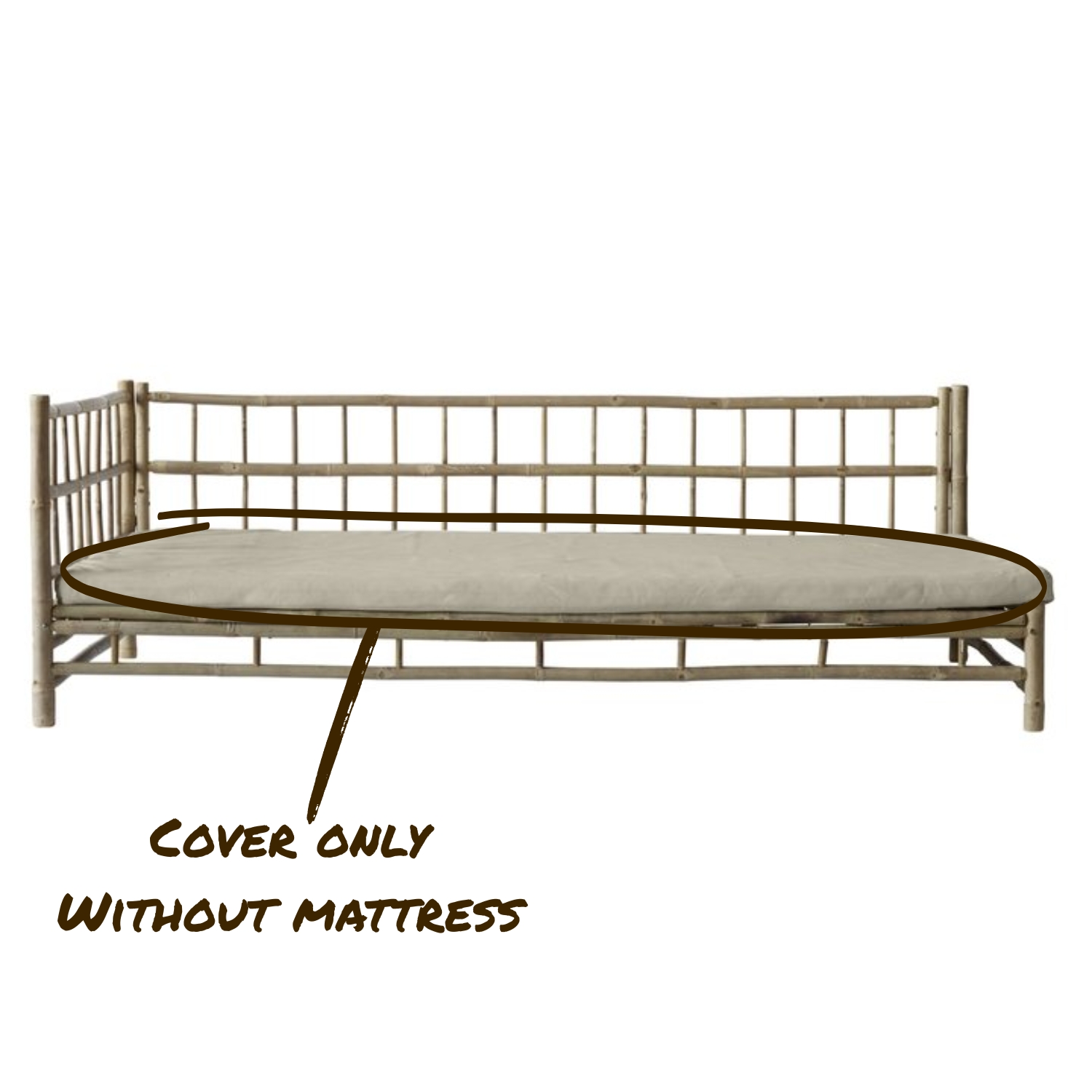 Cover for mattress for BAMBEDLOUNGE – both left and right. The cover is made from a weather-resistant outdoor fabric that is water-repellent and highly colourfast. The removable cover is machine washable, making it easy to care for in everyday use. Please close the zipper before machine washing. A practical choice when you want to refresh your cushion or replace the cover separately.