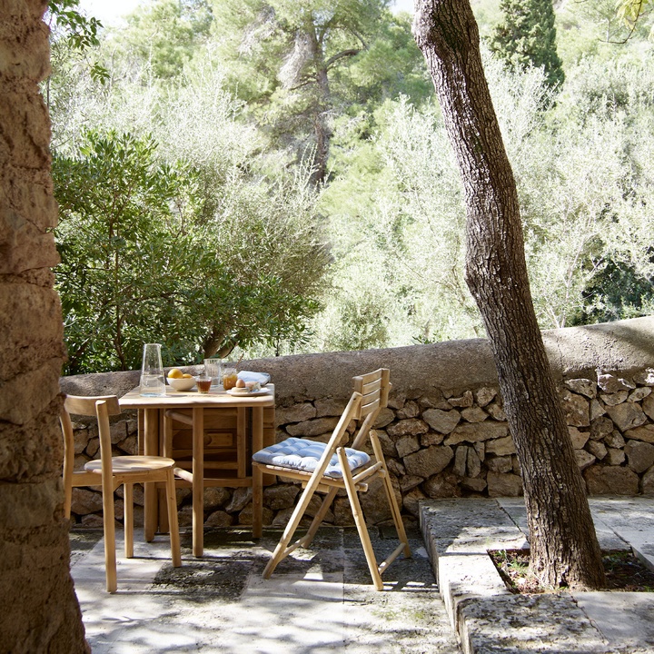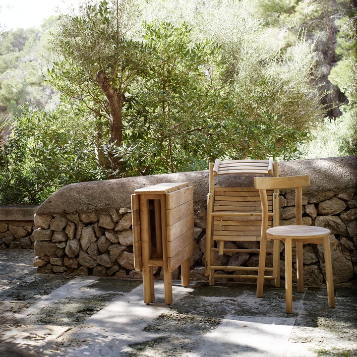 Each piece is shaped by skilled artisans, soft-sanded with smooth, rounded edges that highlight the natural beauty and warmth of the teak. The design is Scandinavian and timeless, with scaled-down proportions that make the furniture well suited for balconies, terraces, and smaller outdoor spaces.
