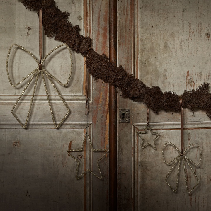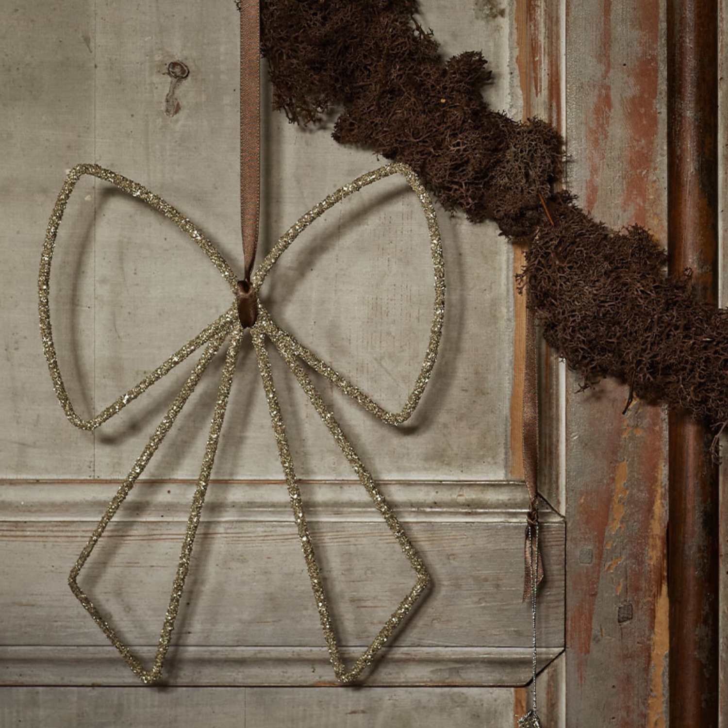 Holiday season coming up. Style your home with our bows in metal. Covered in recycled glass glitter that reflects light magically.