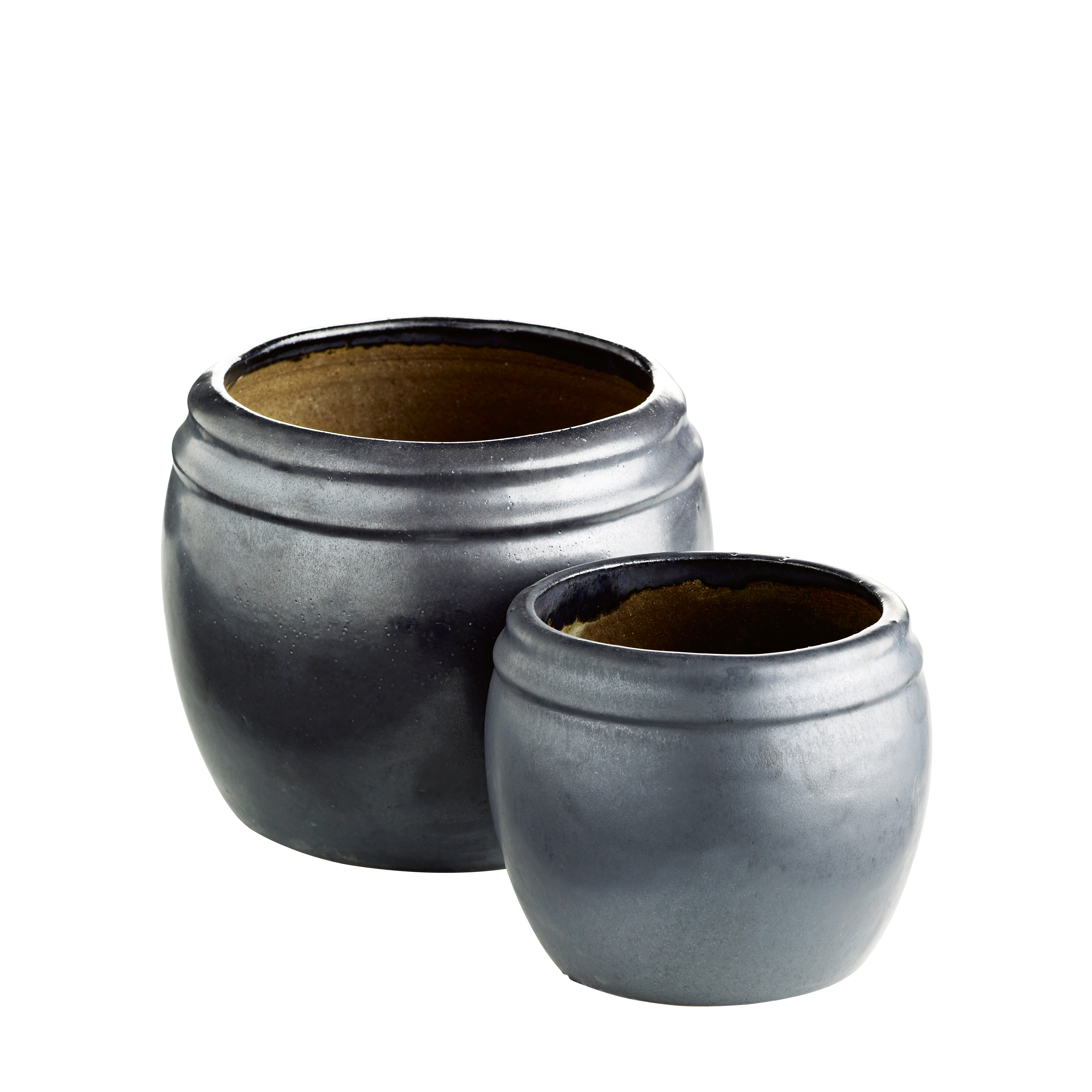 Set of 2 glazed ceramic pots for small trees and vibrant green plants.