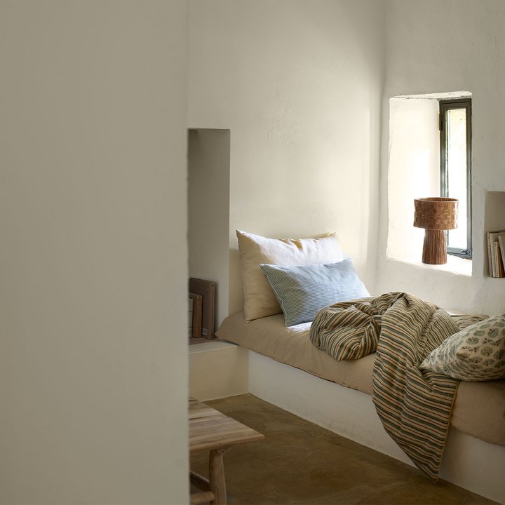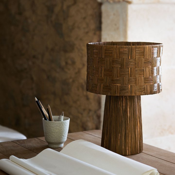 Create a warm and inviting atmosphere with the Lampbast-pleat. This table lamp is handwoven in raffia, emitting a subtle softness that complements most interior styles. As each lamp is handmade, no two variants are alike.