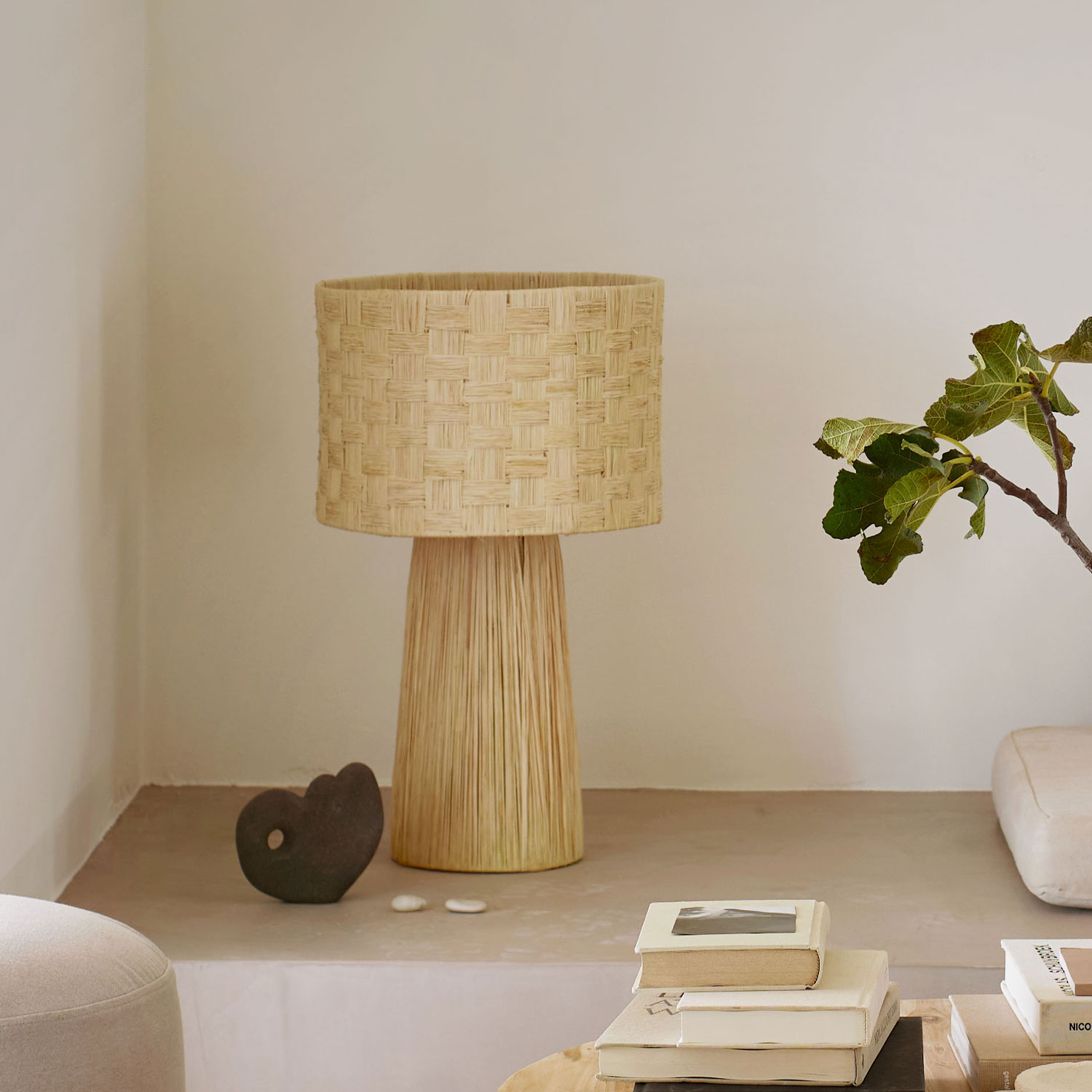 Create a warm and inviting atmosphere with these Lampbast-pleat-l. These table lamps are handwoven in raffia, emitting a subtle softness that complements most interior styles. As each lamp is handmade, no two variants are alike.
