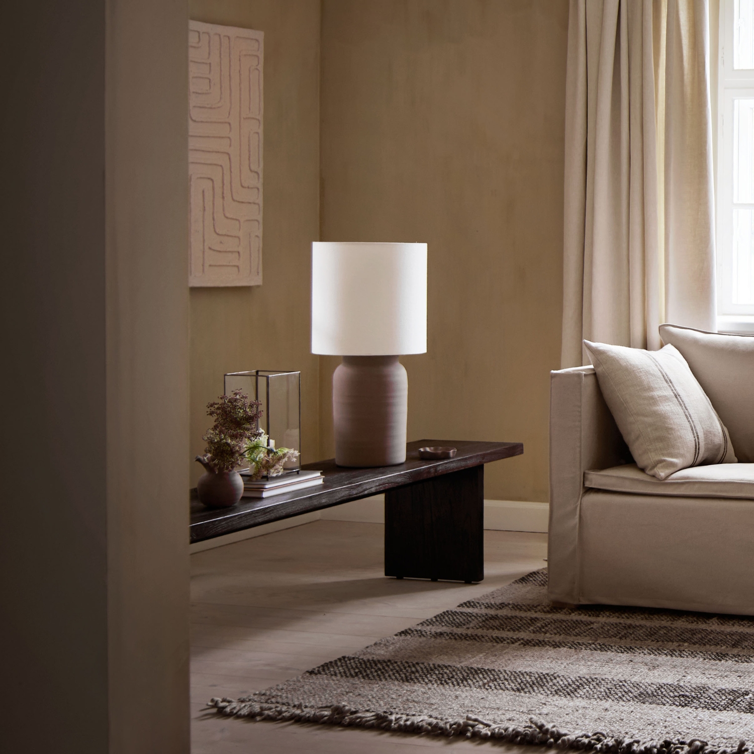 The Clay lamp series unites a contemporary look and feel with a timeless shape. Made from clay, this lamp has a beautiful, matt smoke coloured finish, contributing any room a textural yet calm look.