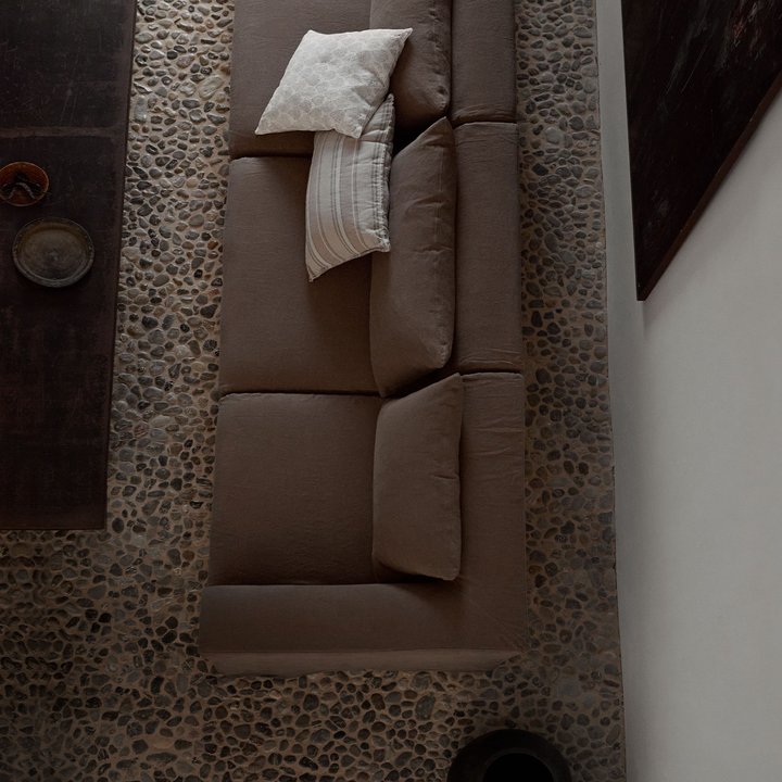 Our Lico cushions add a sophisticated touch to the space, created by the soft stripes in varying sizes that run across the cover.