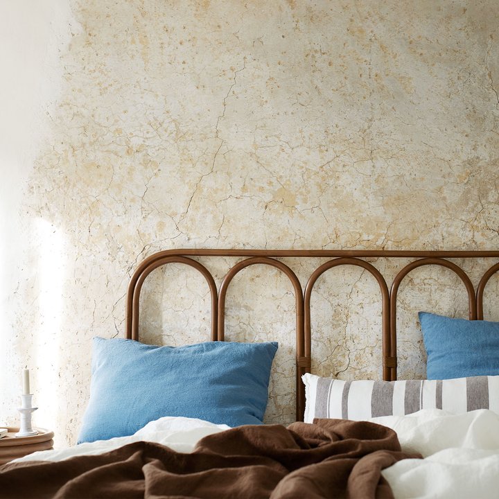 This bedboard is a stunning focal point in any bedroom, bringing a touch of nature indoors. The bedboard is made in Mandola rattan. This is a type of unskinned rattan that only grows in a few places in Indonesia. Rattan is a sustainable resource that renews after harvest. Due to the nature of the material, the surface may be uneven in color. That is the natural charm of this collection.