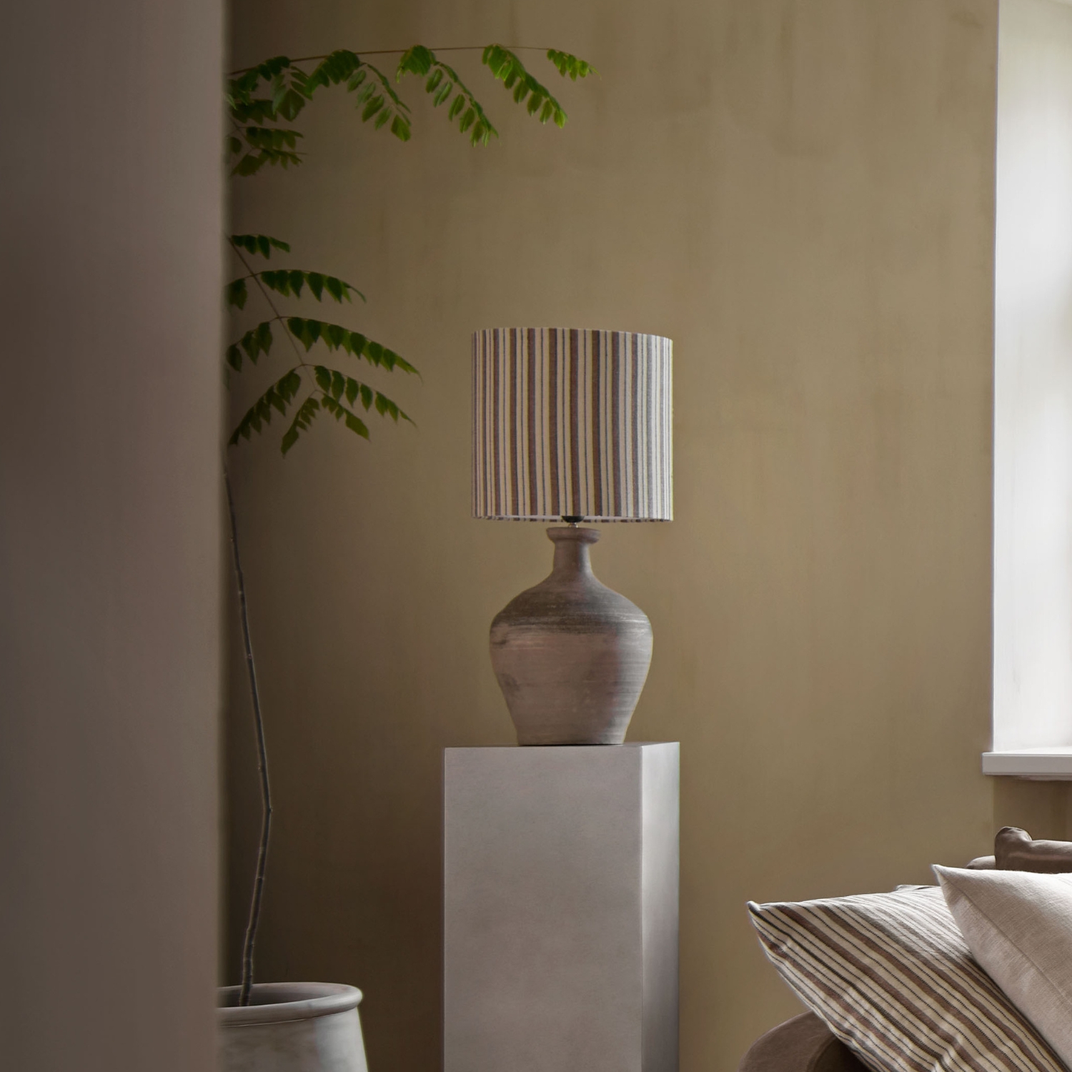 Our Maru lampshades are made from 100% cotton with classic stripes in warm tones. The simple shape and balanced pattern create a calm atmosphere and a soft, inviting light.