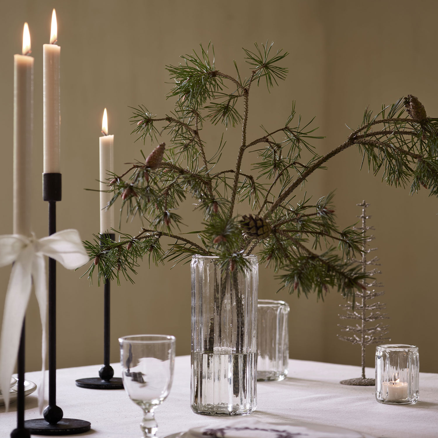 The tall vase in the Mata series brings a sense of elegance and lightness to your home. The fluted glass catches the light beautifully, enhancing even the simplest branches or dried flowers.