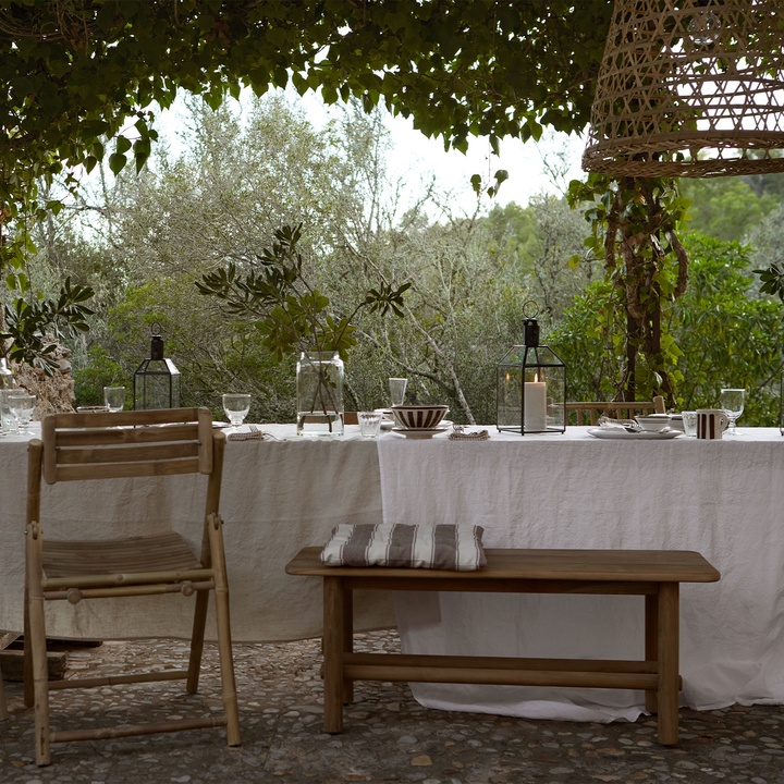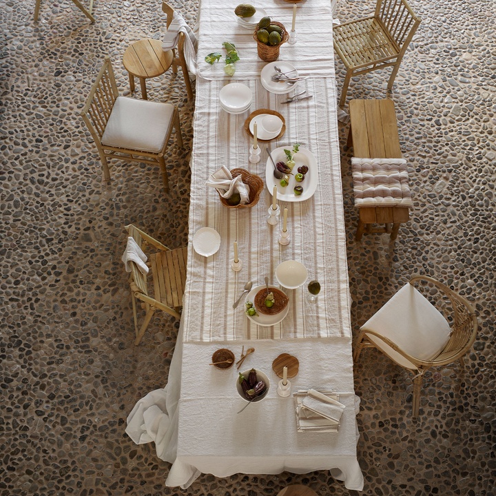 The Mega series is woven from recycled cotton with wide, harmonious stripes that create a calm and timeless expression. The textiles have a relaxed yet elegant character, inviting everyday use with an appreciation for simplicity.