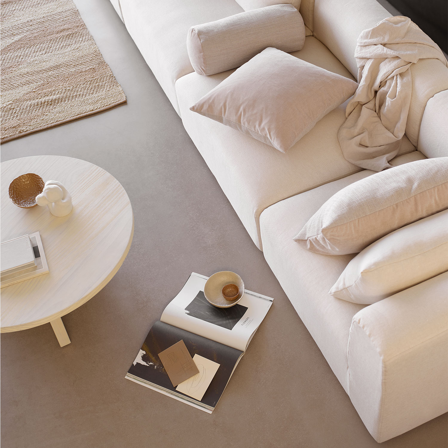 Beautiful module sofa with a Scandinavian simplicity in mind, invites you to coziness and relaxation. With its organic shapes, it creates a soft and elegant expression and work as a beautiful canvas for our cushions and throws and fits perfectly into many homes.