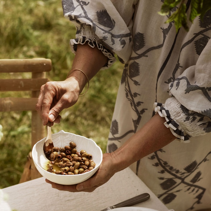 Our Pure program is a range of kitchenware with a simple, delicate, and clean design. The glossy glaze enhances its elegance, and we have drawn inspiration from nature by crafting a few pieces in the shape of leaves. With its smooth, shiny surface, it pairs beautifully with our wooden Nusa plates and striped napkins.