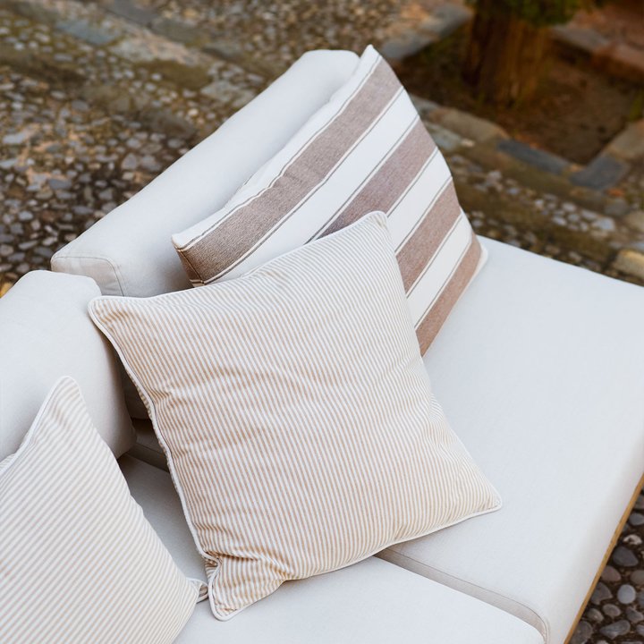 This cushion cover effortlessly brings the essence of summer into your home and complements outdoor spaces, harmoniously pairing with our outdoor furniture range.