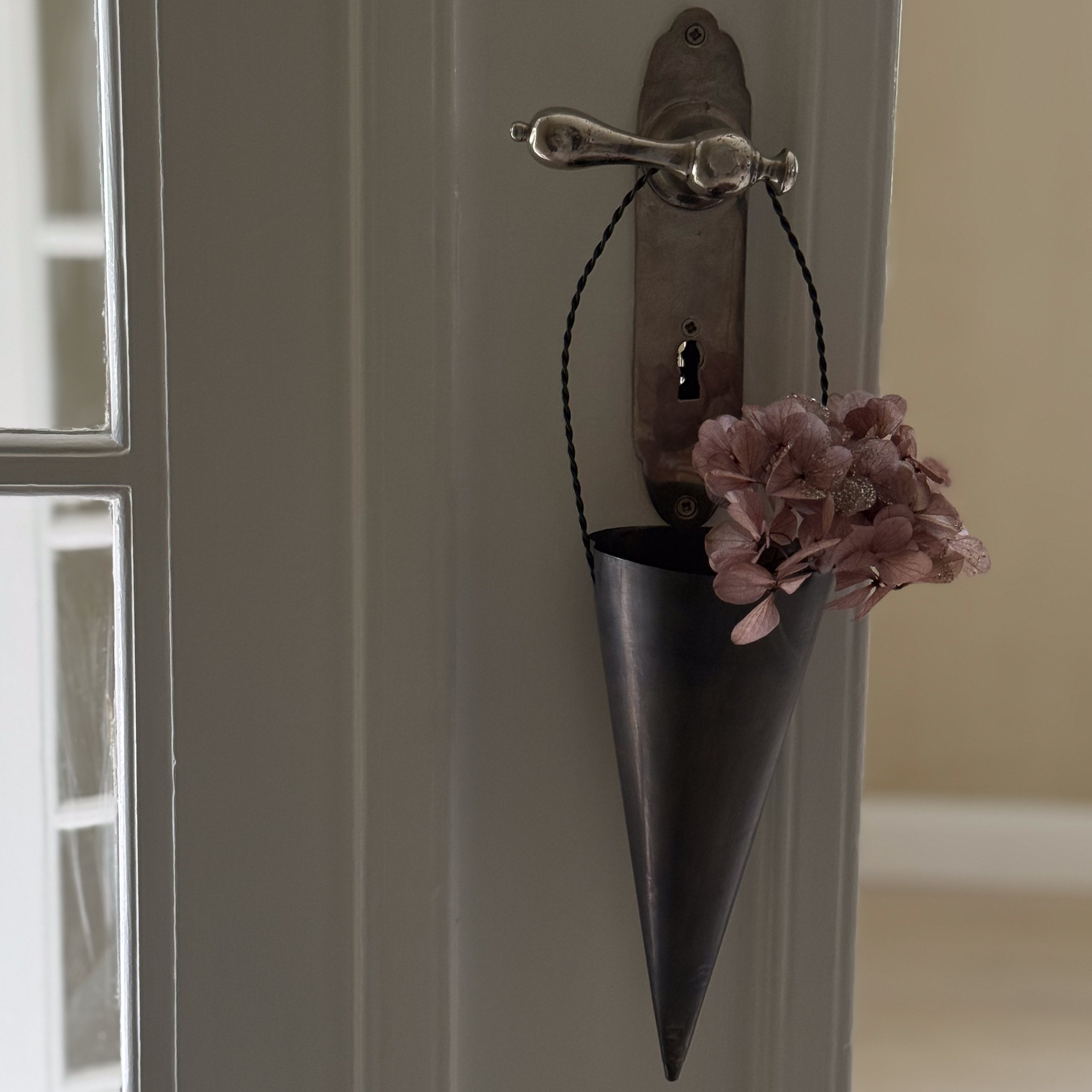Fill this handcrafted cone with Christmas greens and let it add a festive touch to your decor. Made from oxidised brass.