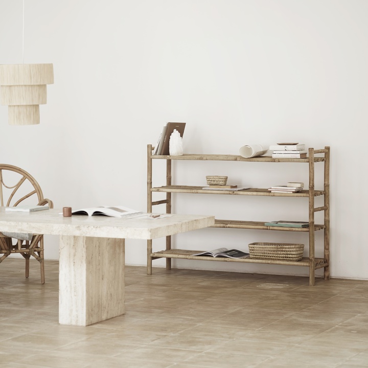 Bamboo shelf in Scandinavian design with straight lines. The simplicity of the design makes the bamboo bar easy to integrate into the Nordic interior design.