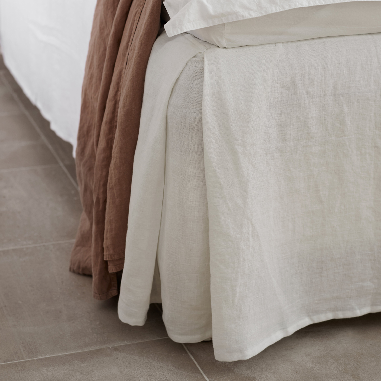 Complete your bed with this beautiful bed skirt to hide the mattress. A beautifully made bed can become even more pretty if the mattress is hidden with the lovely bed skirt which measures 160 x 200 x H 50 cm and is made of 100% linen. Linen has a distinguished texture and delightful softness which becomes even softer and with each washing making it the perfect fabric for this bed skirt.