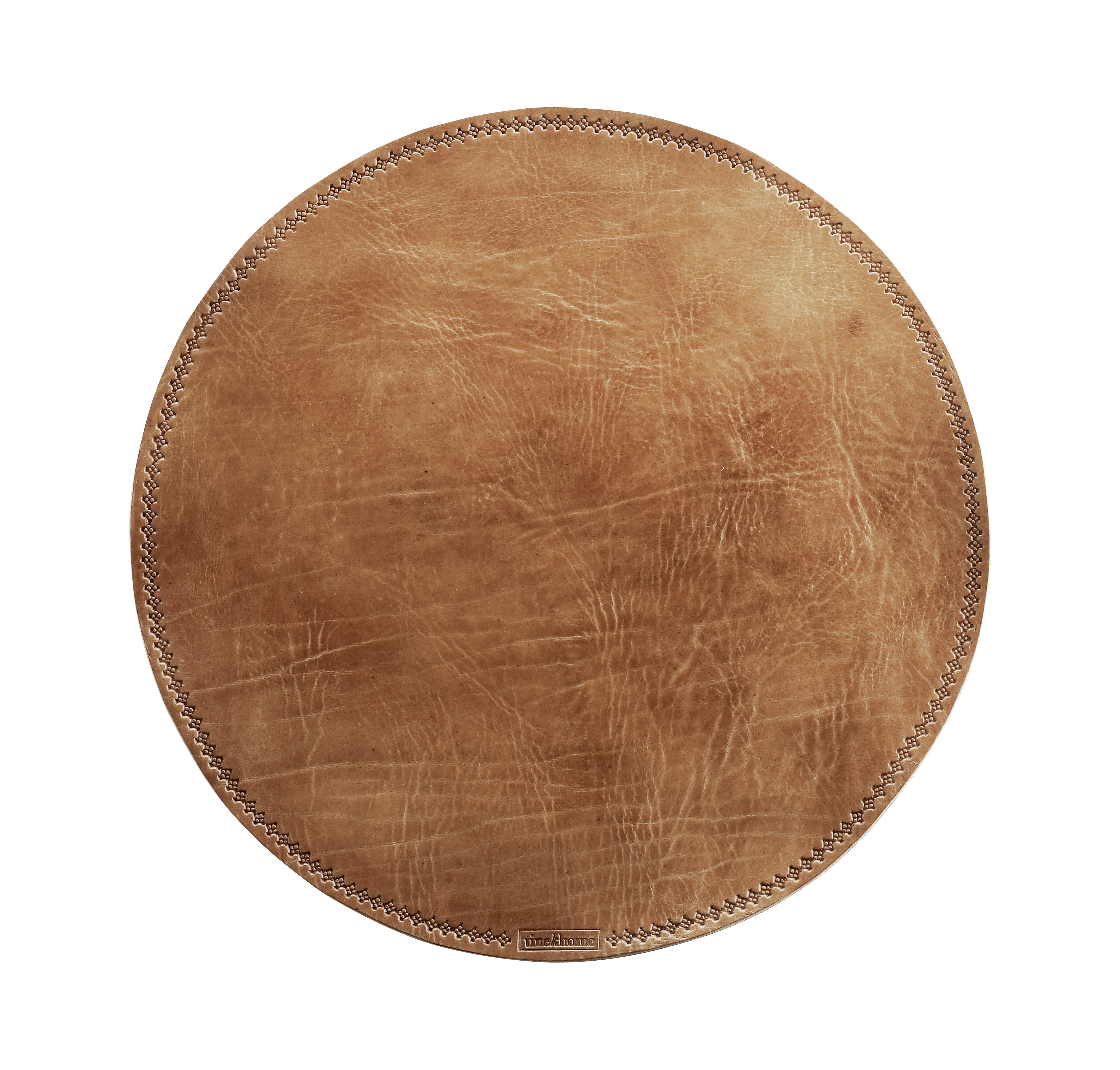 Handmade place mat in brown leather. The place mat can also be used as desk pad and measures D 40 cm.