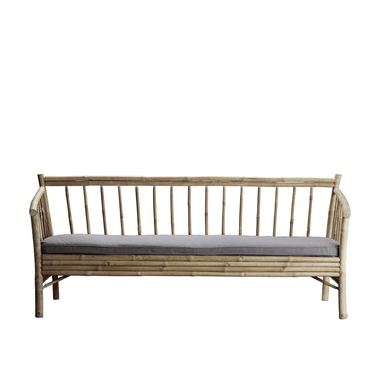 Use this lounge sofa in a simple Scandinavian design in the decor both indoors and outdoors. Our bamboo furniture is handmade with mortise and tenon to bring out the best details in the bamboo. A grey cushion for the sofa in 100% cotton is included, which makes the sofa comfortable to sit in. The simple design and straight lines give the sofa an edge and the bamboo material gives a cozy and natural look. In a bamboo piece of furniture, you get a beautiful natural design that is easy to move around and lasts for many years.