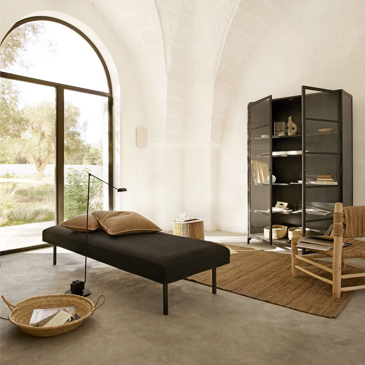 Tine K Home daybed is created with a focus on Scandinavian simplicity. The clean lines and organic shapes give a calm and elegant expression. Our quality Ica is made of 100% cotton, which gives the cover a nice and calm look. Our colour Phantom is a dark grey colour that gives a simple and elegant look to your interior and is available with both steel, brass and black legs. Dry clean only.