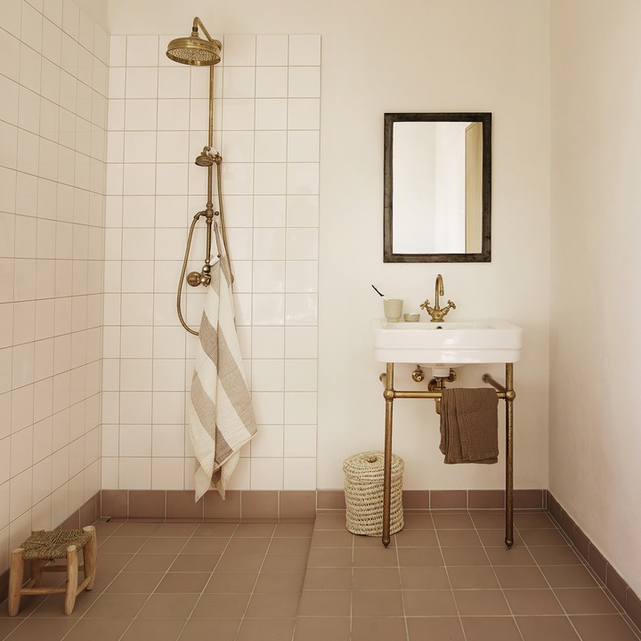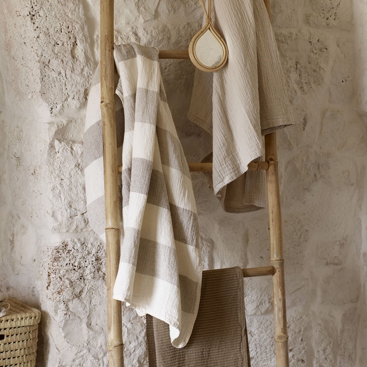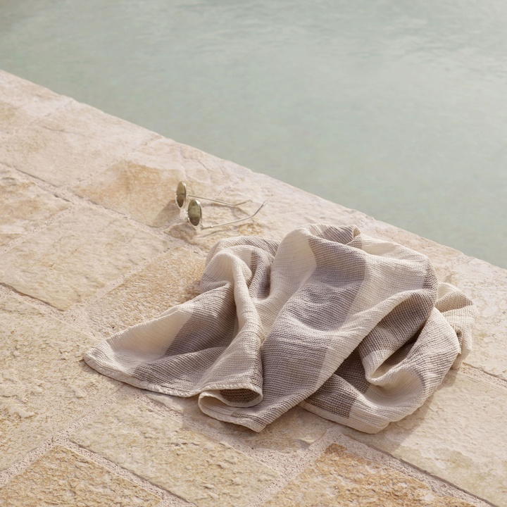 Soft and light towel in a mix of cotton and linen. Minimalistic design with stripes and a waffled texture. Fast drying because of the light weight.