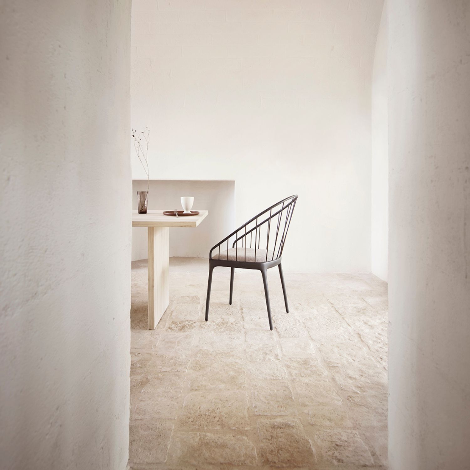 FEEL dining chair in recycled aluminium. The FEEL-series has a wide selection of chairs and tables, which makes it possible to use the furniture across different rooms. With its rounded shapes, elegant silhouette, and sleek exterior, it is true to the craftsmanship traditions of Scandinavian design.