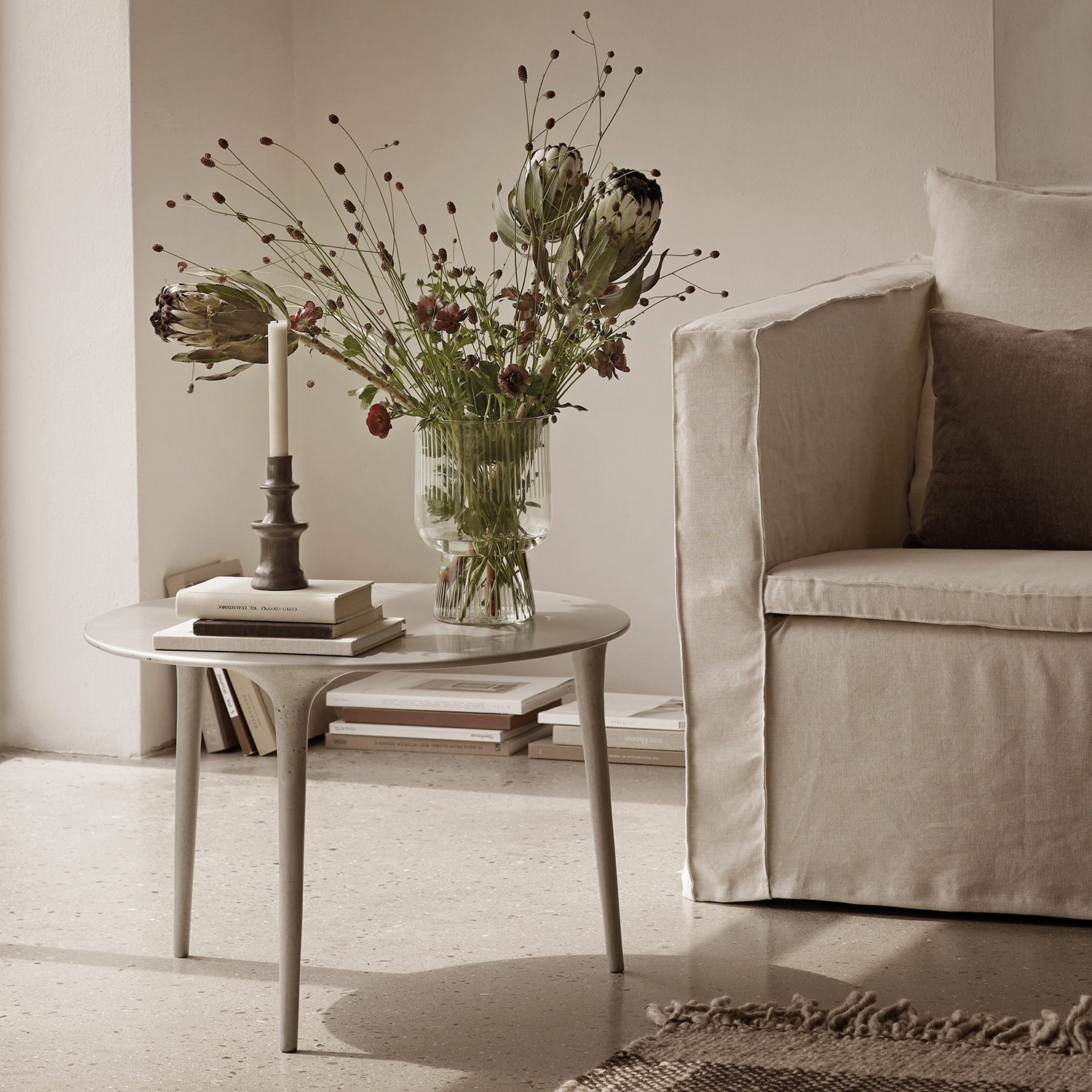 Presenting the Feeltable in this clean and minimalistic look. This table does not only have aesthetic appearance, but is also designed in recycled aluminum. This choise of material ensures a raw look providing uniqeness to each Feeltable as pinholes arise in the casting process and become part of the design. A transparent lacquer gives an extra smooth finish.