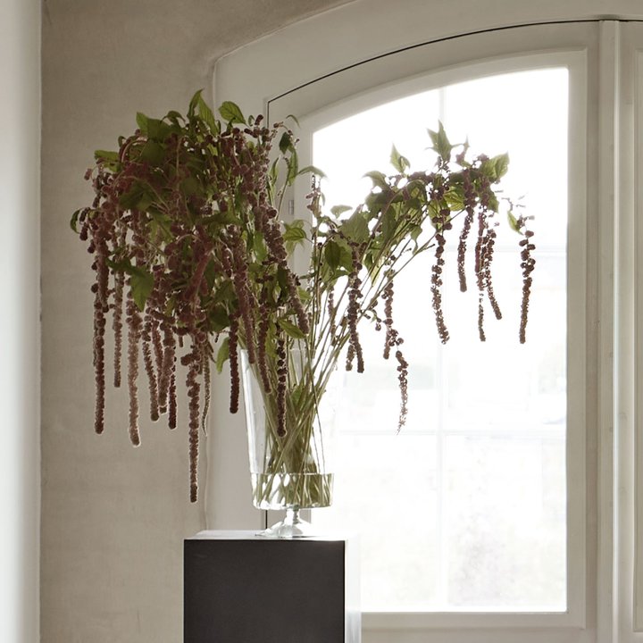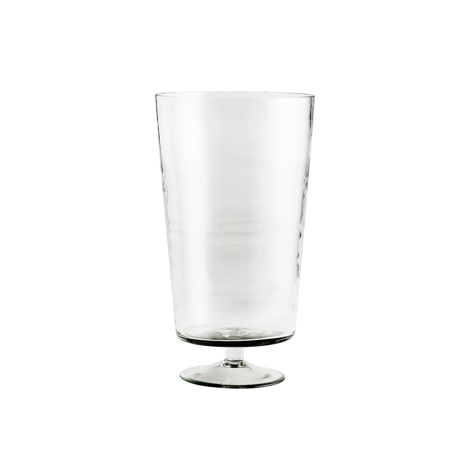 A beautiful vase in clear glass with a classic goblet shape. Its simple design highlights the natural beauty of flowers and branches, making it ideal for both soft garden bouquets and sculptural stems.