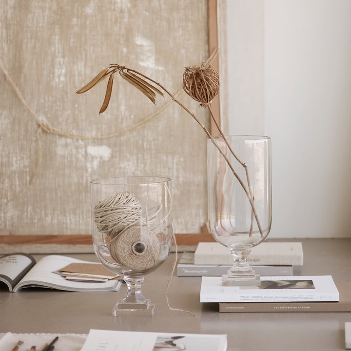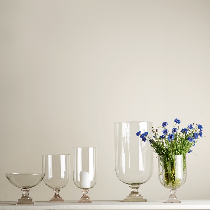 Elegant glass hurricane with a classic shape that beautifully frames both flowers and candlelight. Use it on its own or combine different sizes to create a balanced and atmospheric setting on the table or in the window.