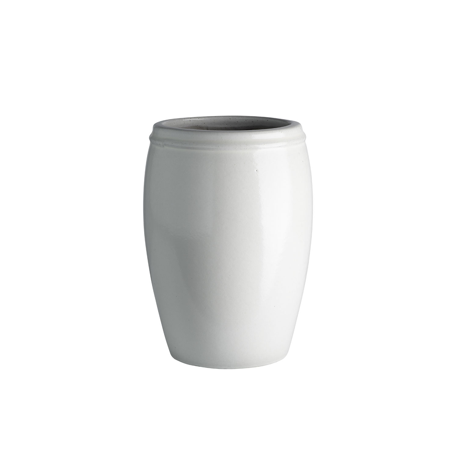 Create life and environment indoor as well as on the terrace with this large glazed clay pot. The pot is suitable for small trees and lively green plants. The jar is glased with a bright white colour thats creates a good contrast to fresh green plants.
